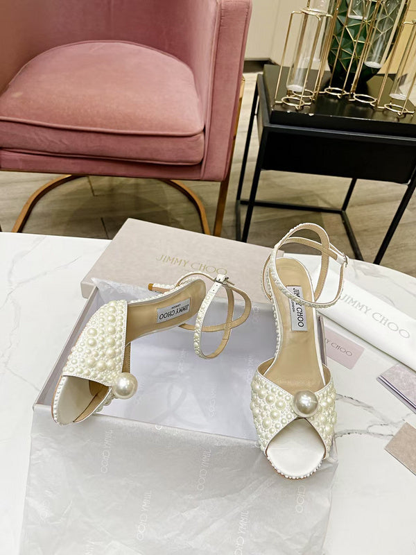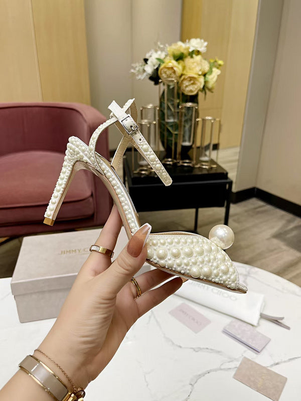 BMJS1 Slippers 8.5CM 10CM High heels women 35-41 leather shoes With Box