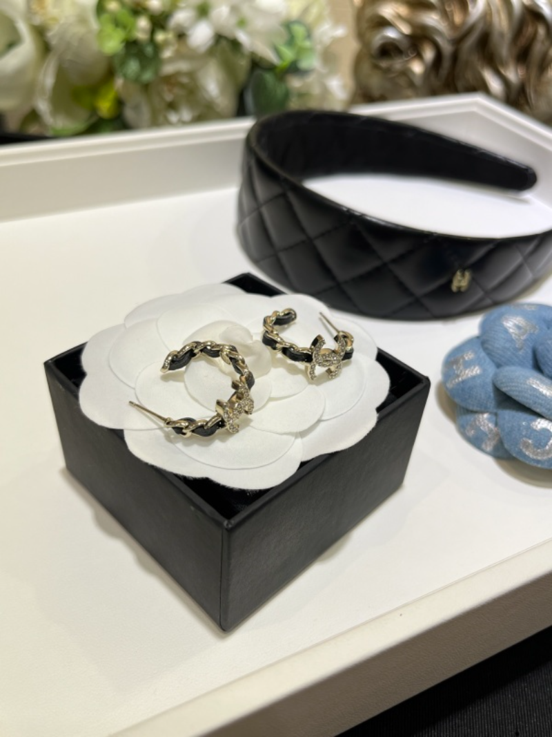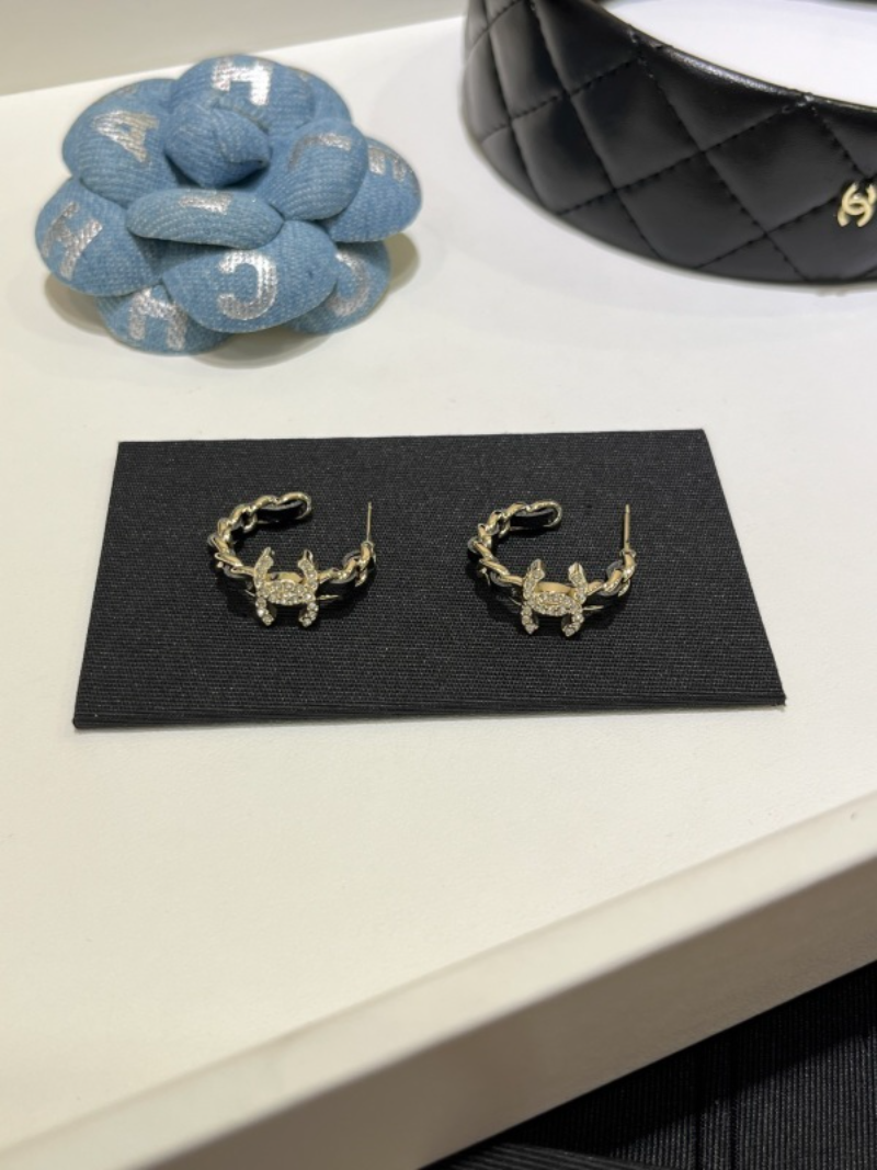 CHE79 New Gold Full Diamond Double C Batch Chain Loop Earrings Jewelry