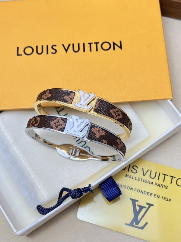 S462 Women's Titanium Steel Flower Leather Bracelet Jewelry