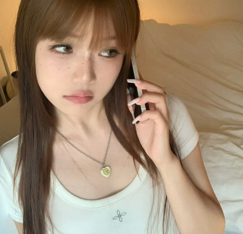 X500 Women's heart-shaped flower drop oil necklace jewelry